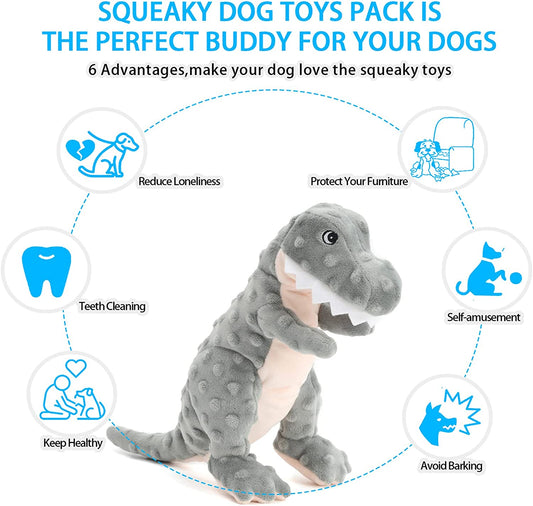 Stuffed Dinosaur Dog Toys Durable Plush Dog Toy with Crinkle Paper Cute Squeaky Dog Toys Dog Chew Toys for Small Medium Large Dogs and Puppy
